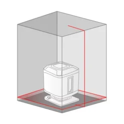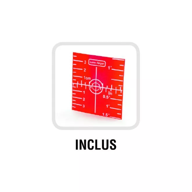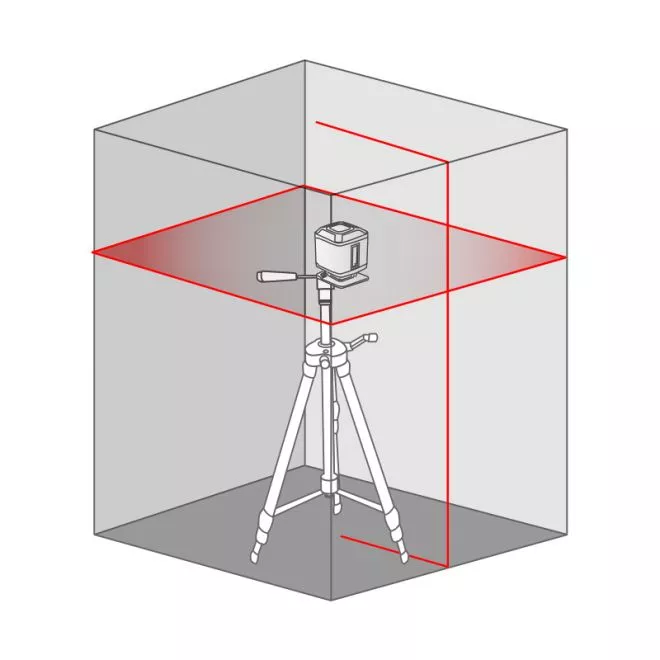 - Niveau laser vert (Réf. 61430). Projette: un plan de 360° à l’horizontale et un plan vertical à 90° par rapport à l’autre formant une croix murales