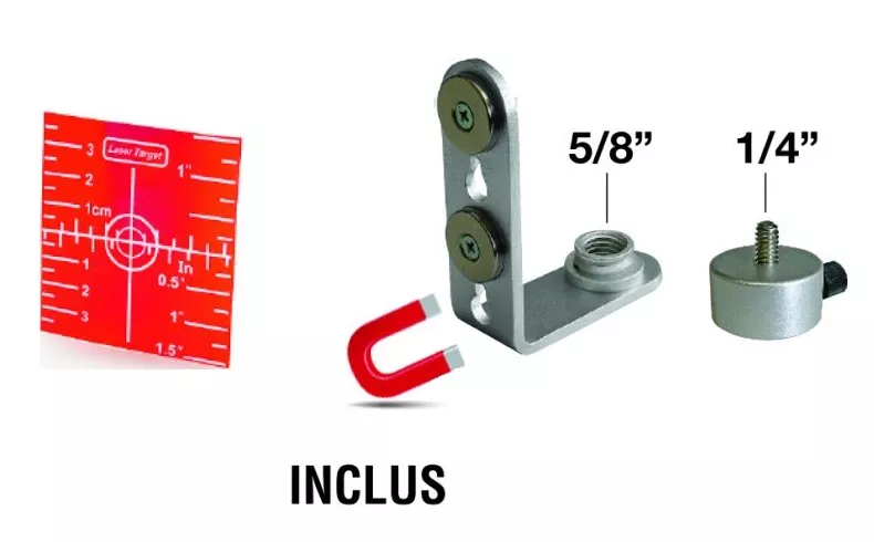 - Niveau laser auto-nivellent: projette un plan vertical et horizontal avec une ouverture à 180 °, fixe ou auto-nivelée