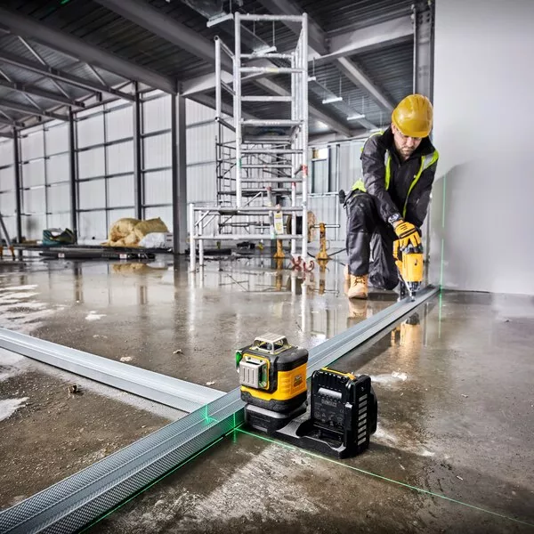 - Doté d’un faisceau laser vert jusqu’à quatre fois plus visible que le faisceau laser rouge, les faisceaux du laser multi-lignes 3 x 360° sont visibles jusqu’à 35 m lorsque vous travaillez à l’intérieur ou jusqu’à 50 m avec le détecteur DEWALT DE0892G en option lorsque vous travaillez en intérieur ou en extérieur.